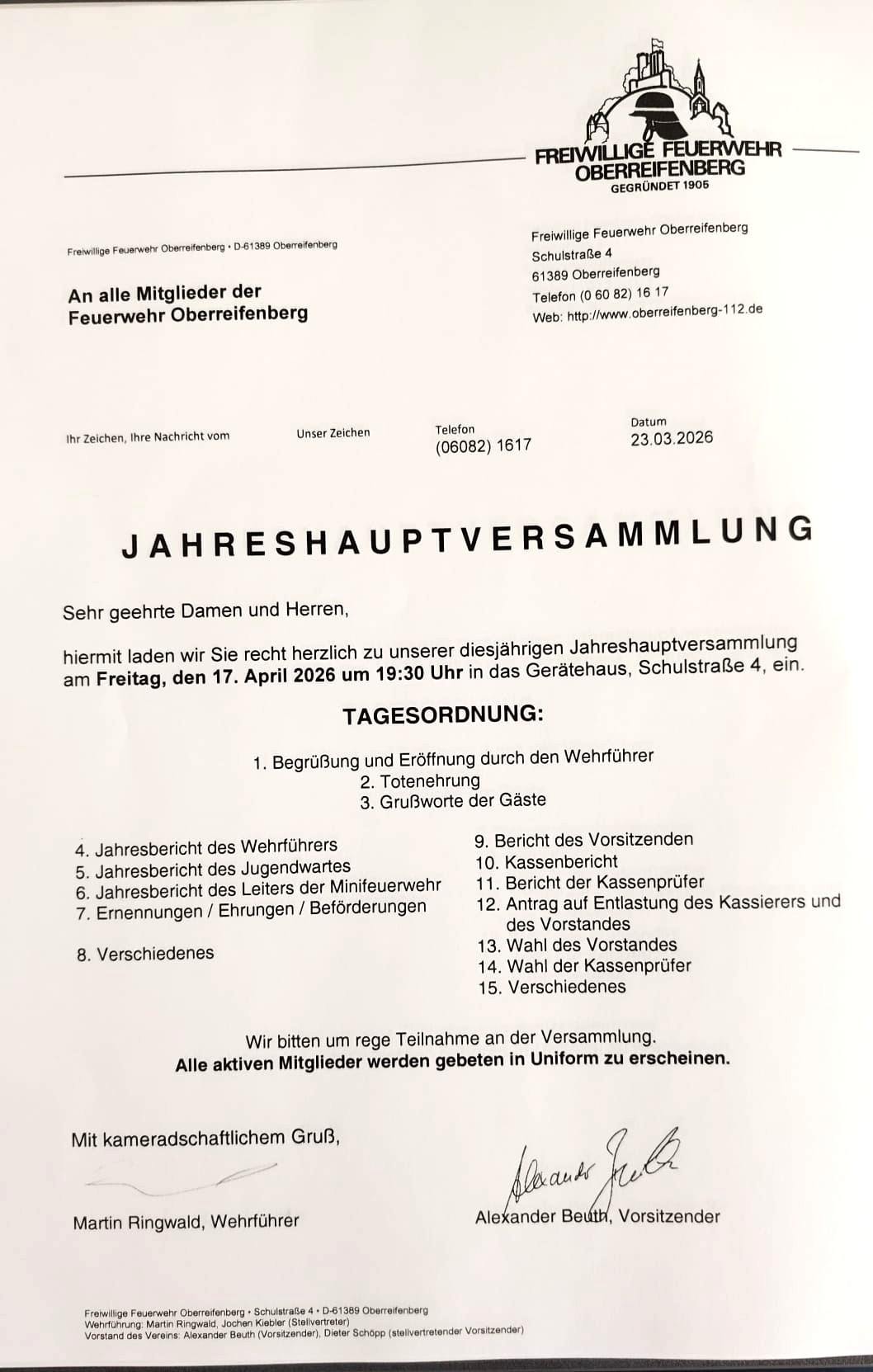 Willkommen bei der freiwilligen Feuerwehr Oberreifenberg.